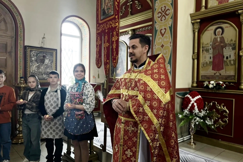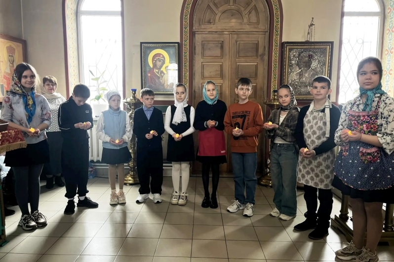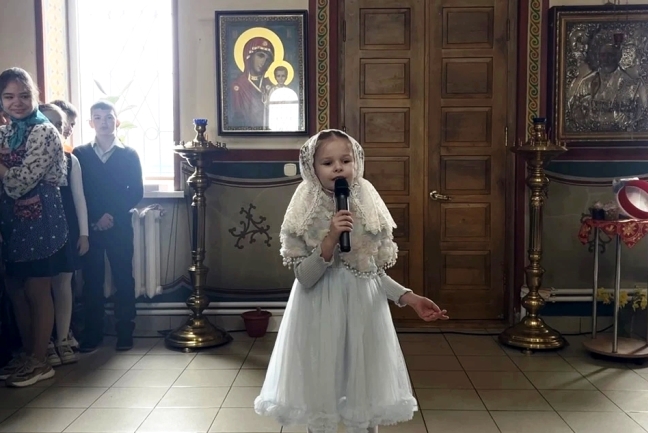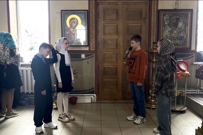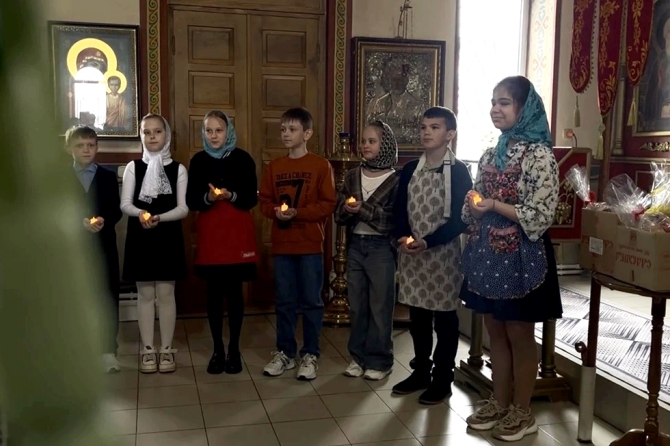 Юные христиане пришли поздравить прихожан со Светлым Христовым Воскресением. Дети представили сценку, в которой через простые и глубокие образы раскрыли смысл главного торжества Православной Церкви — победу Христа над смертью и дарование вечной жизни всем верующим. В выступлении прозвучали пасхальные песнопения и стихотворения, прославляющие Воскресшего Спасителя. Дети также позвонили в колокола.