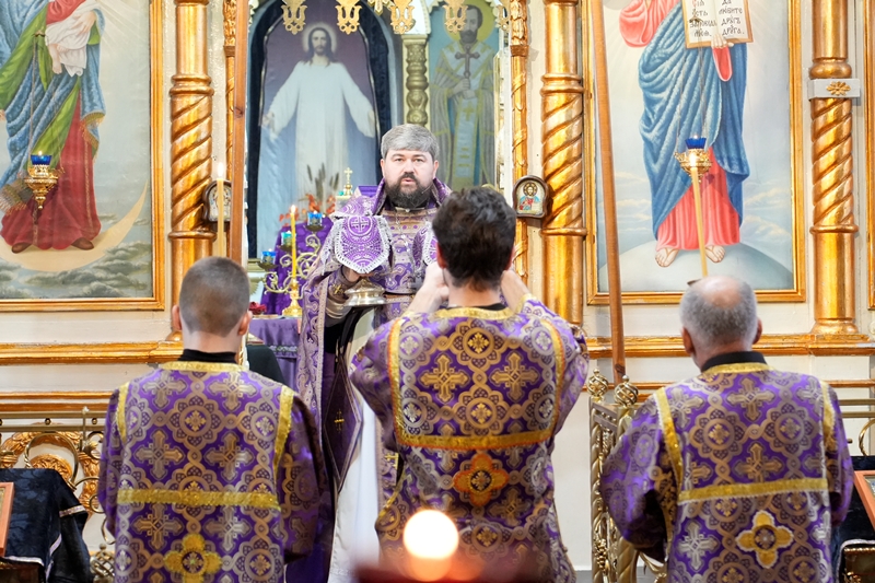 На сугубой ектении были произнесены особые прошения: "...о еже прияти молитвы нас недостойных рабов Твоих в сию годину испытания..." и прошение о "Преосвященных архипастырях, пастырях, монашествующих и мирянах земли Украинския, о единстве Церкви Христовы ревнующих, в заточении и гонениях сущих". Затем духовенство вознесло молитву о Святой Руси. По благословению Святейшего Патриарха Московского и всея Руси Кирилла эта молитва возносится во всех храмах Русской Православной Церкви.