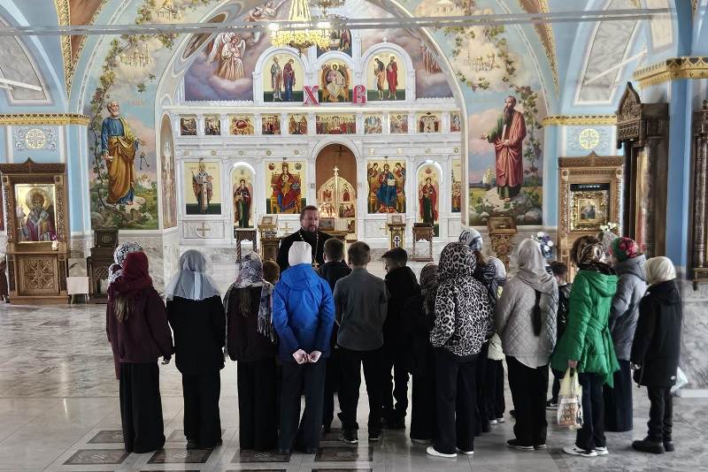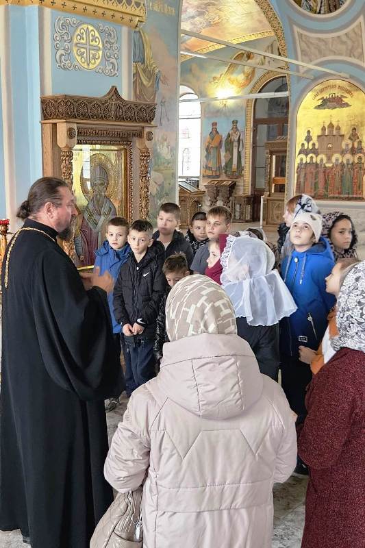 В храме ребят встретил настоятель – иерей Димитрий Ткаченко, который с теплотой и вниманием отнесся к юным гостям. Священнослужитель провел для школьников подробную экскурсию, начав с краткой истории самого храма, его архитектурных особенностей и значения в жизни города.