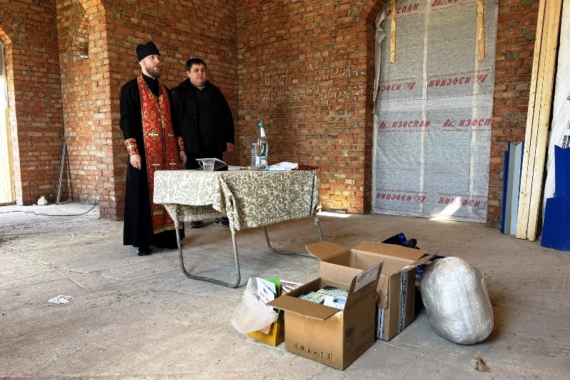 26 апреля настоятель храма святых Апостолов Петра и Павла села Петропавловка иерей Ярослав Манохин посетил строящийся храм Покрова Пресвятой Богородицы в селе Новобогородицкое Петропавловского района.