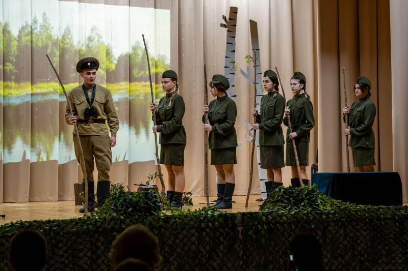 После возложения цветов к мемориальным доскам, присутствующие прошли в дом культуры, где посмотрели спектакль по повести Б. Васильева «А зори здесь тихие», подготовленный театральной студией Заводской средней общеобразовательной школы.