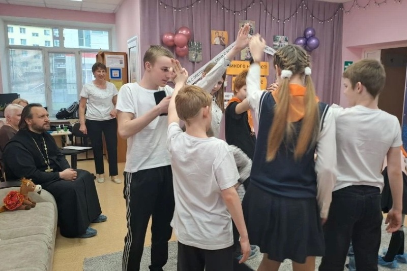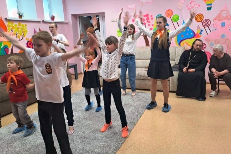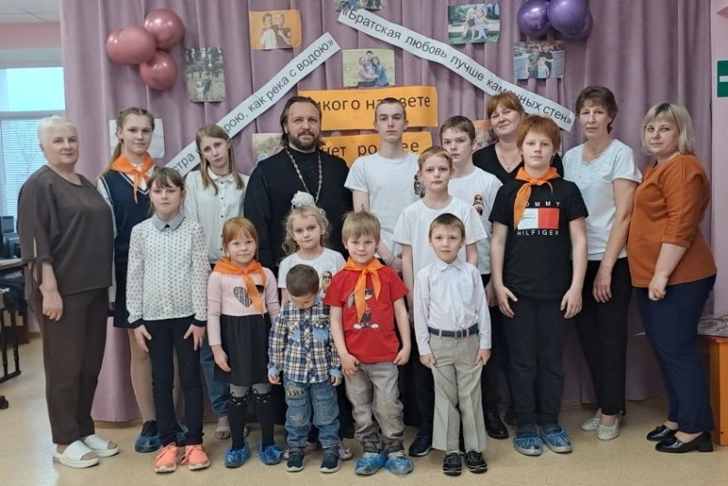 В ходе встречи иерей Игорь поговорил с детьми о том, что любовь вырастает из наших добрых дел по отношению друг к другу, из взаимной помощи, деятельного внимания к братьям и сестрам, умения прощать и просить прощения.