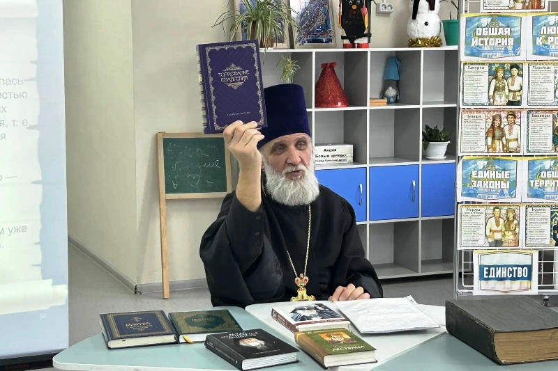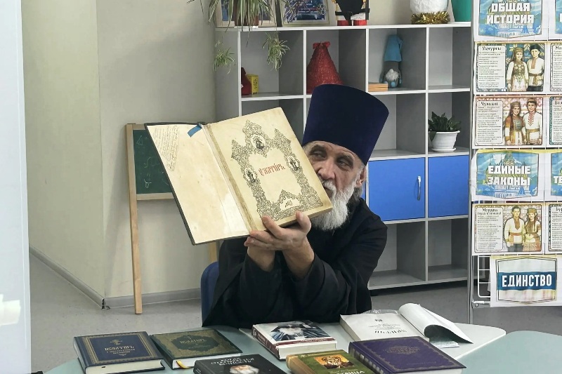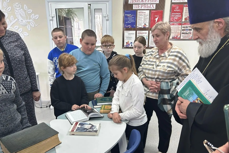 Особое внимание было уделено демонстрации изданий – от раритетных православных книг до современных версий литературы. Школьники могли не только увидеть, но и потрогать некоторые экземпляры, что сделало встречу особенно живой и запоминающейся. Священник также отметил, что книга – это не просто источник знаний, но и наставник, собеседник и проводник в мир духовности.