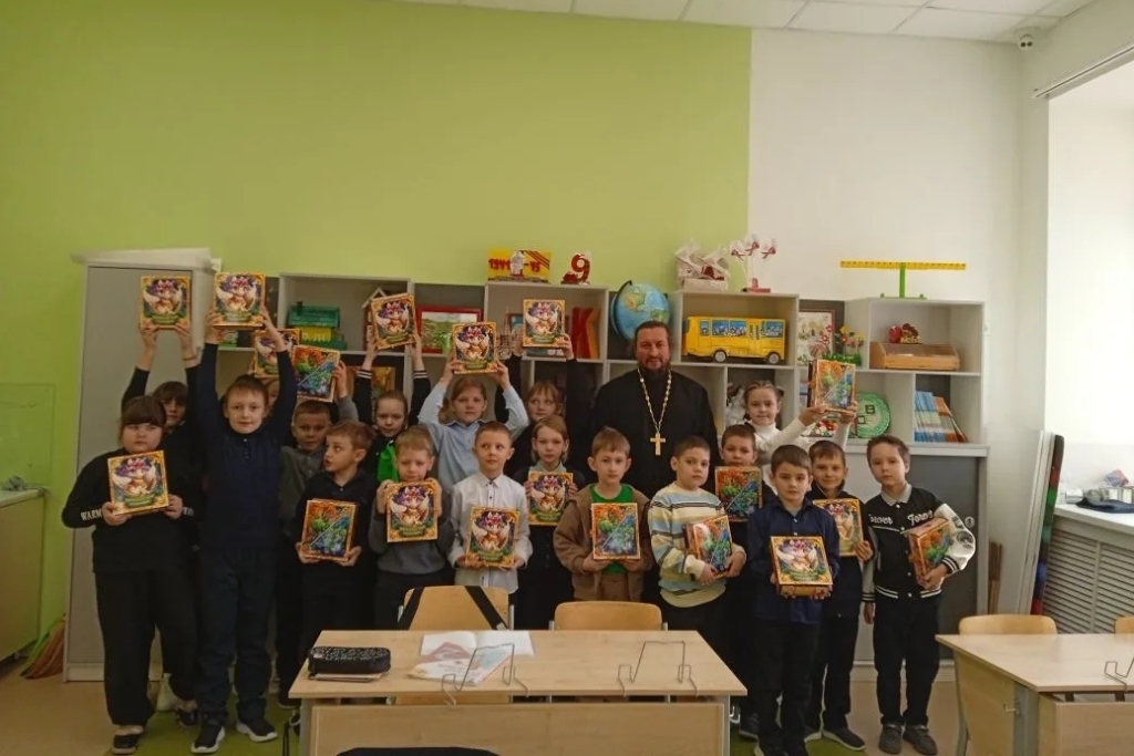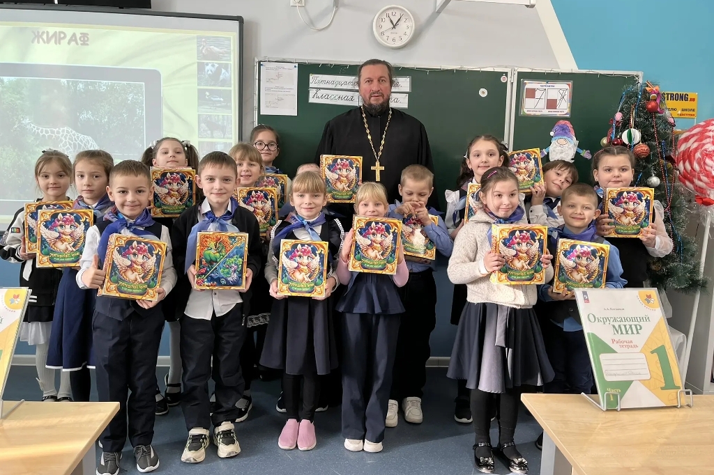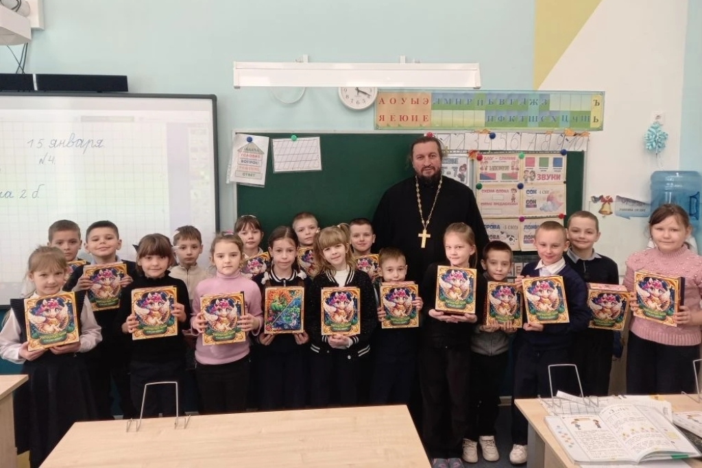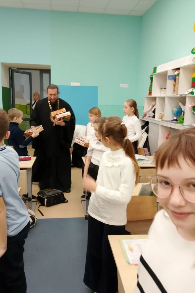 В завершение встречи священнослужитель раздал учащимся младших классов сладкие подарки, которые были приобретены при посильном содействии благотворителей.