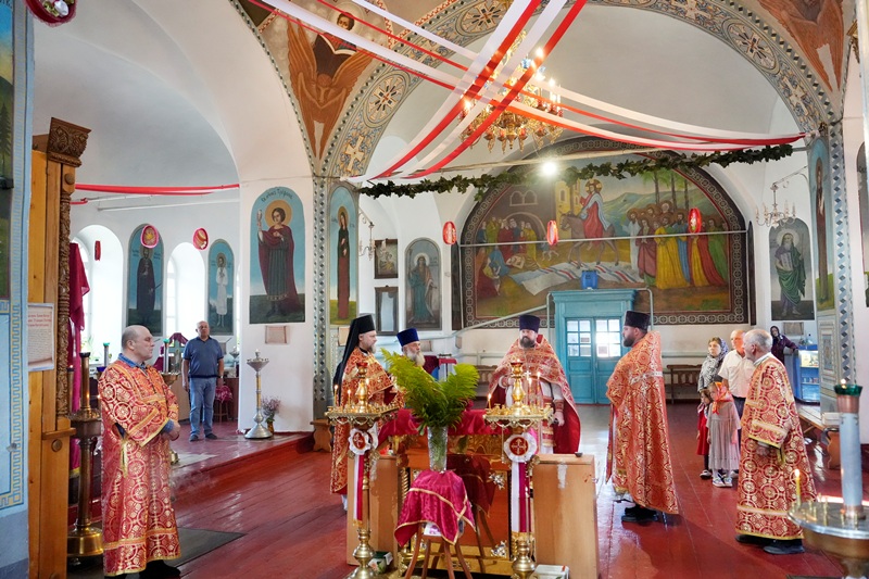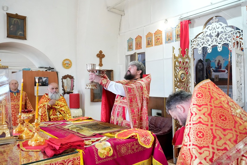 Его Высокопреподобию сослужили: настоятель храма Рождества Пресвятой Богородицы села Старая Криуша протоиерей Владимир Ляхов, настоятель храма Святой Троицы села Новомеловатка иерей Николай Андриевский и настоятель храма иконы Божией Матери «Казанская» села Новотолучеево иеромонах Даниил (Шевцов).