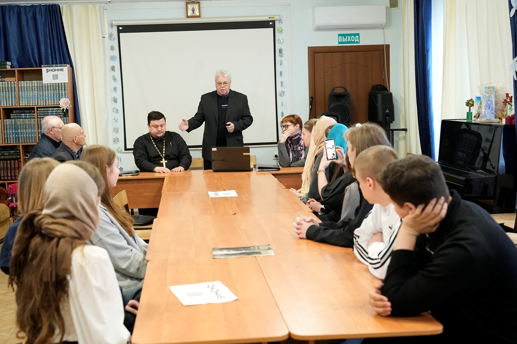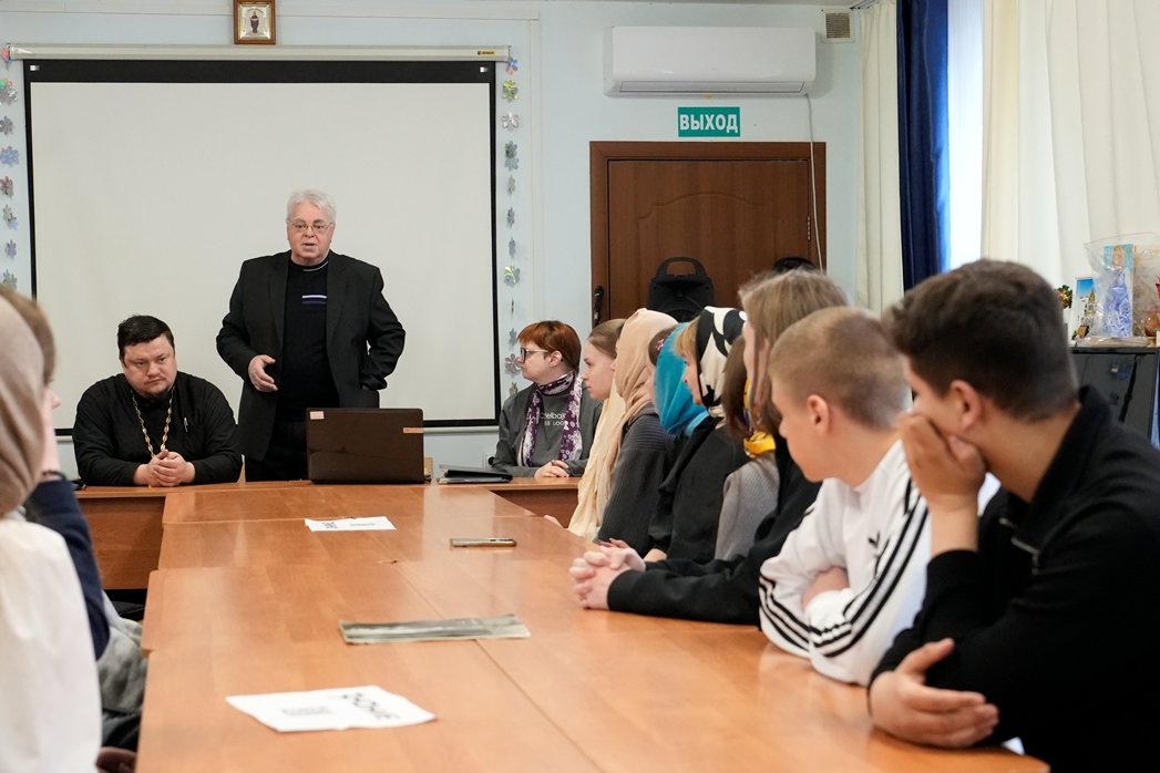 20 апреля, в рамках урока «Разговоры о важном», настоятель Михайло-Архангельского храма в селе Воронцовка, иерей Виктор Семенов, посетил учащихся 8-го класса Воронц...