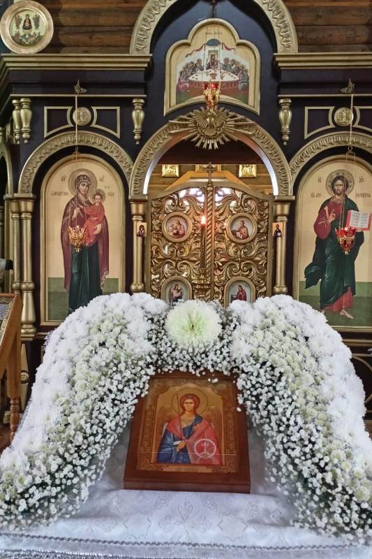 По возвращении в храм перед иконой Архистратига Божия Михаила было совершено славление и возглашено уставное многолетие Святейшему Патриарху, Правящему Архиерею, богохранимой стране нашей и всем православным христианам.