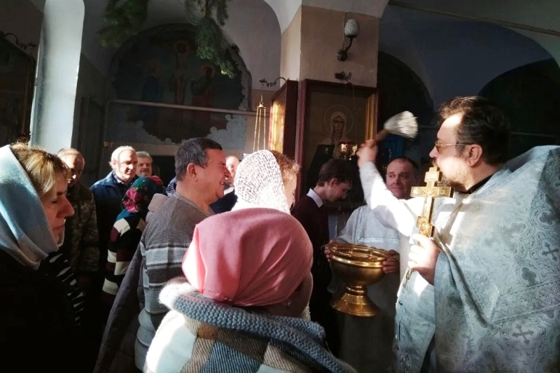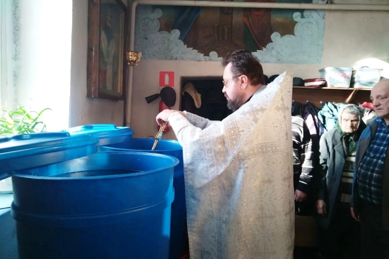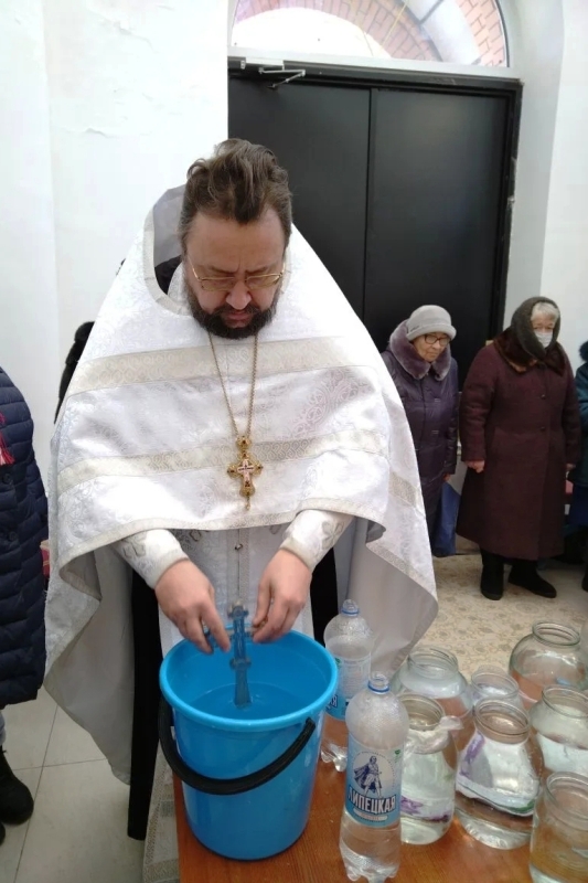 После произнесения просительной ектении начался чин Великого водоосвящения. При пении хором тропарей «Глас Господень на водах...» священник изнес из алтаря напрестольный крест. Было совершено каждение сосудов с водой, приготовленной к освящению. После трех паремий и зачала из послания апостола Павла, иерей Дионисий возгласил Евангельское зачало, в котором повествовалось о Крещении Господа Иисуса Христа. После мирной ектении и чтения молитвы чина Великого водоосвящения, настоятель храма трижды погружал Крест в воду при пении тропаря праздника Богоявления: «Во Иордане крещающуся Тебе, Господи, Троическое явися поклонение: Родителев бо глас свидетельствоваше Тебе, возлюбленнаго Тя Сына именуя, и Дух, в виде голубине, извествоваше словесе утверждение: явлейся, Христе Боже, и мир просвещей, слава Тебе». Затем освященной водой были окроплены храм и весь народ.