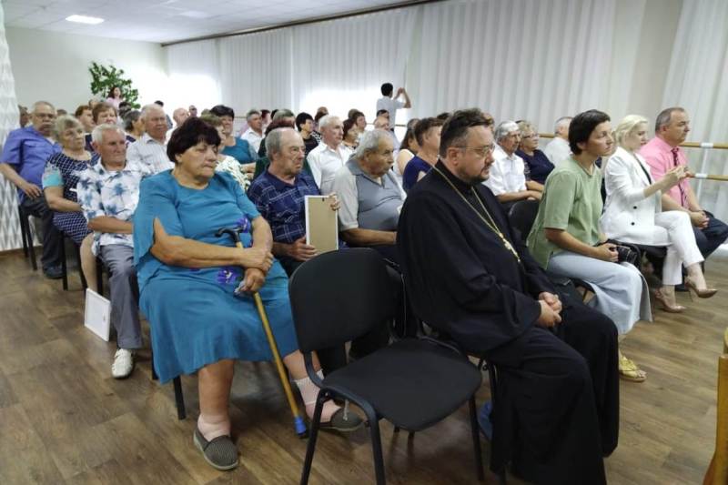 После со словами поздравления к юбилярам обратился настоятель храма святых апостолов Петра и Павла села Петропавловка иерей Дионисий Киреев. В своём слове иерей Дионисий кратко рассказал житие святых Петра и Февронии Муромских.