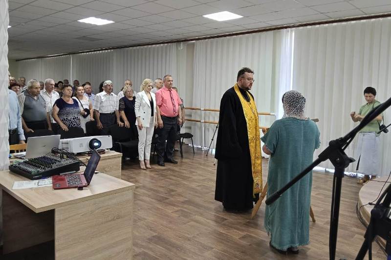 Перед началом торжественной части священнослужитель совершил молебен благоверным Петру и Февронии Муромским.