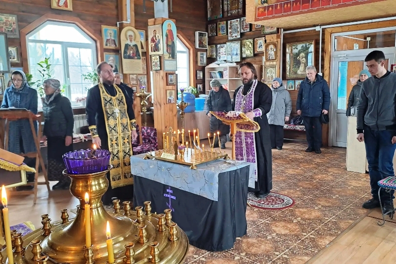 Богослужение возглавил помощник благочинного Калачеевского церковного округа в Воробьевском районе иерей Игорь Подопригорин в сослужении настоятеля храма Рождества Пресвятой Богородицы села Никольское-1 иерея Сергия Бунина.