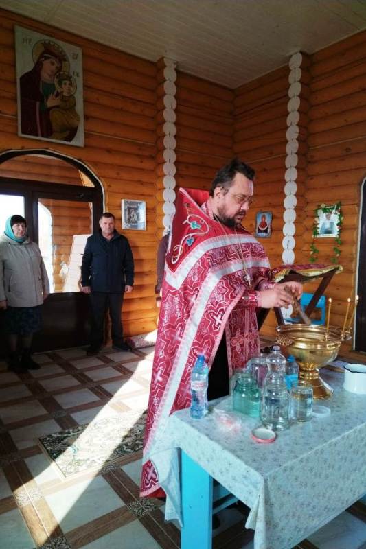 По окончании богослужения священнослужитель поздравил всех молящихся с престольным праздником и кратко рассказал житие святого, а также окропил всех святой водой.