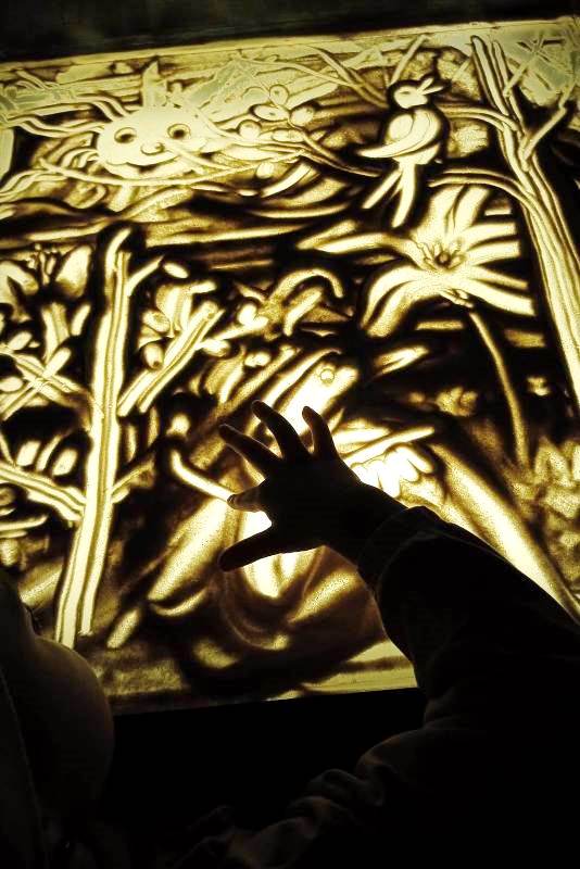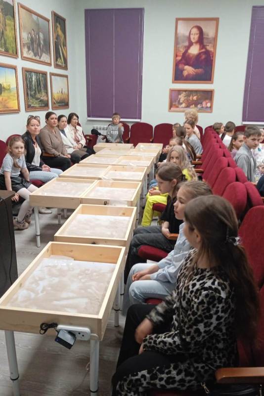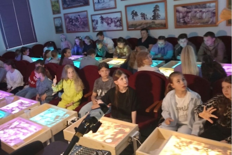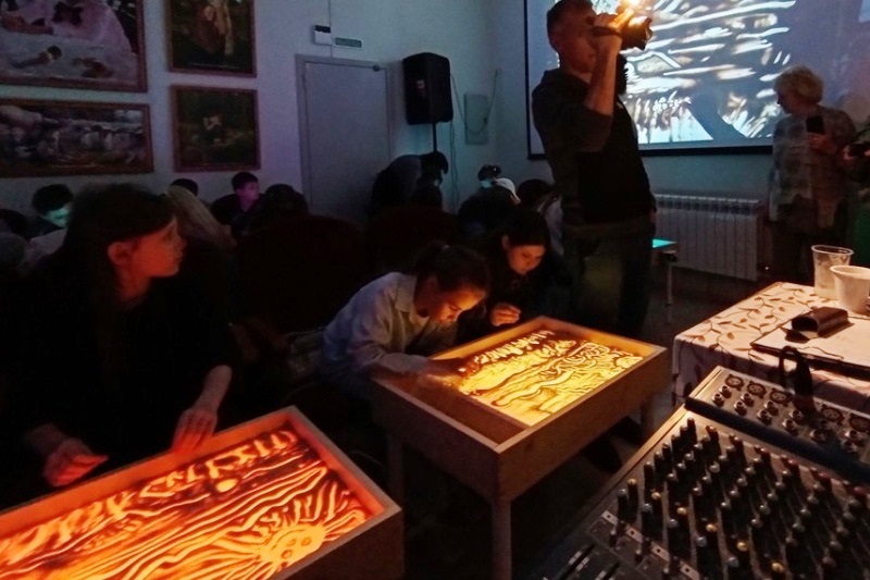 Атмосфера творчества царила в помещении с первых минут. Под аккомпанемент красивой музыки Ирина Трегубова провела мастер-класс работы на световом столе, подготовив участников к коллективному творчеству. Особенно впечатляло поведение детей – несмотря на их значительное количество и разный возраст, в зале царила полная тишина и сосредоточенность. Ребята были настолько увлечены процессом, что вели себя как настоящие взрослые мастера.