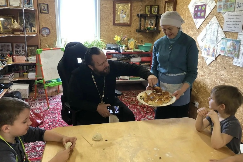 12 апреля настоятель храма Архистратига Божия Михаила иерей Игорь Подпоригорин вместе с матушкой Екатериной посетили ребят из Воробьев...