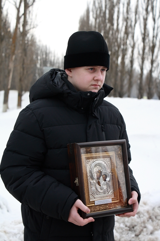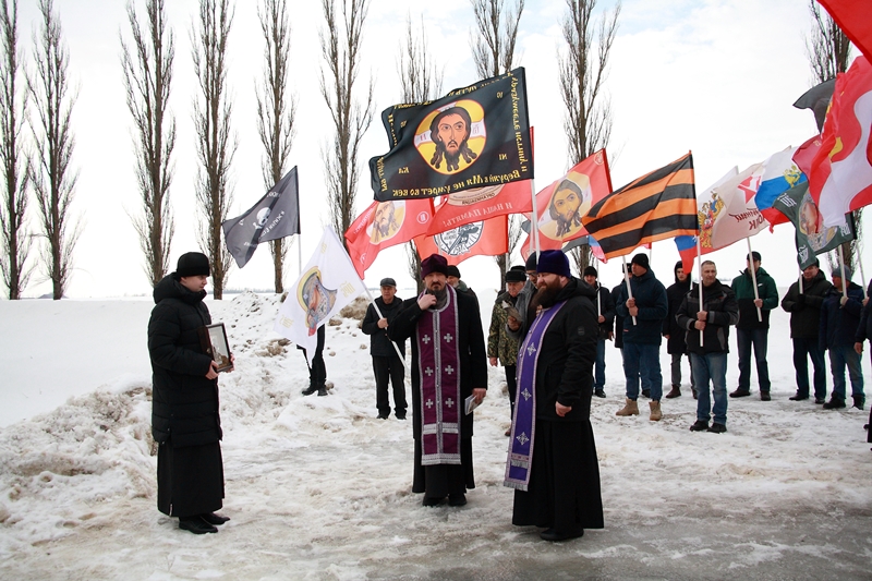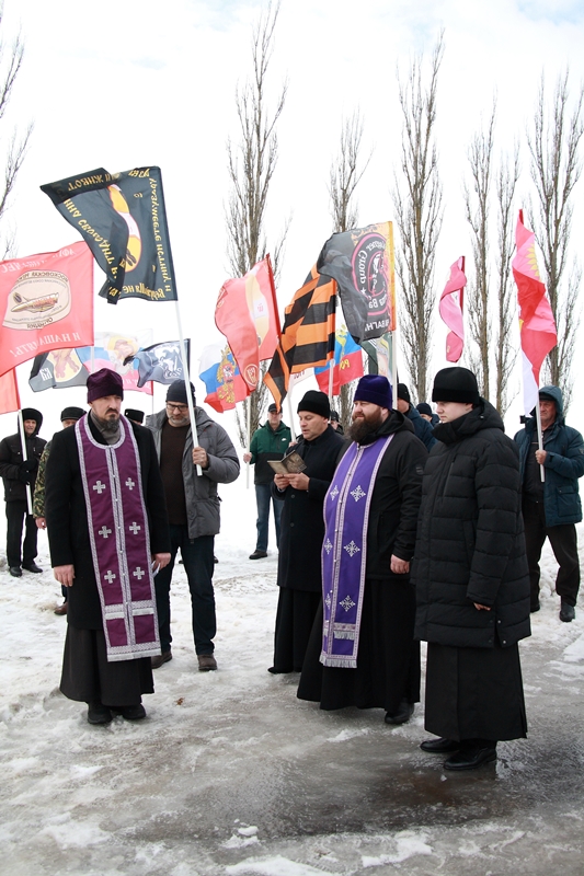 1 февраля, в воскресенье, в Каменке, у поклонного креста на въезде в поселок со стороны Воронежа, благочинный Каменского церковного округа иерей Сергий Папин в сослужении настоятеля Успенского храма села Трехстенки иерея Артемия Фисенко совершил братский молебен.