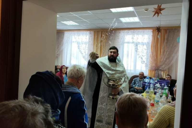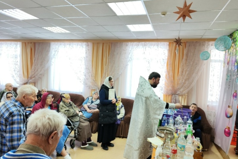 По завершении богослужения иерей Вячеслав окропил всех молящихся святой водой и обратился к присутствующим с проповедью. В своем слове священник поздравил сотрудников и жителей пансионата с праздником Богоявления и пожелал помощи Божией.