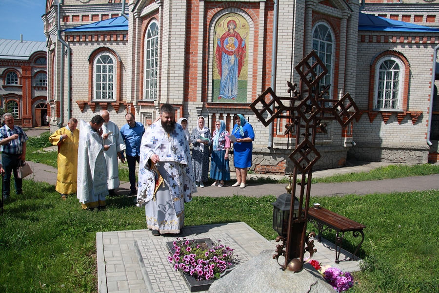 В субботу 31 мая Божественную литургию в Казанском храме Каменки в сослужении настоятеля Успенского храма села Трехстенки совершил благочинный Каменского церковного округа иерей Сергий Папин. По завершении богослужения был совершены водосвятный молен и панихида по почетному настоятелю главного храма Каменки, митрофорному протоиерею Александру Викторовичу Долгушеву, который отошел ко Господу 31 июля 2021 года. По благословению митрополита Воронежского и Лискинского Сергия, временно управляющего Россошанской епархией в указанный год, протоиерей Александр Долгушев был погребен за алтарем Казанского храма, над созданием которого он трудился и был его первым настоятелем. Вместе со священниками молились родственники усопшего и прихожане Казанского храма. 31 мая отцу Александру Долгушеву исполнилось бы 76 лет.
