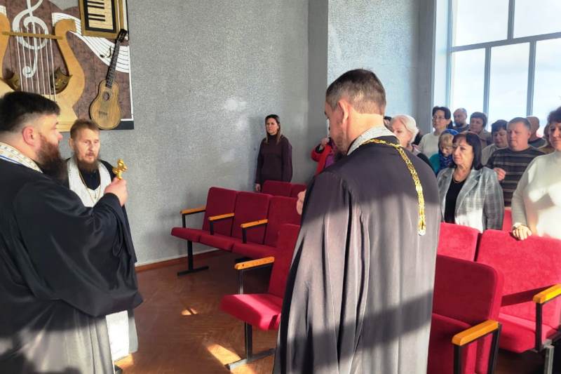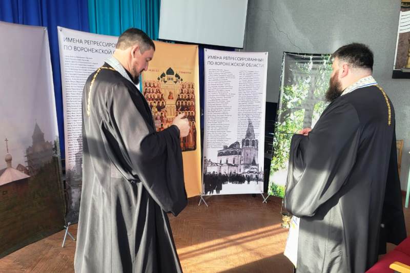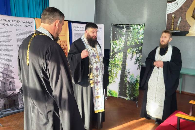 В актовом зале детской школы искусств благочинный Каменского церковного округа иерей Сергий Папин в сослужении настоятеля Троицкого храма села Сончино протоиерея Андрея Гусарева и настоятеля Успенского храма села Трехстенки иерея Артемия Фисенко отслужили панихиду по погибшим в годы репрессий священнослужителям, казакам и простым гражданам.
