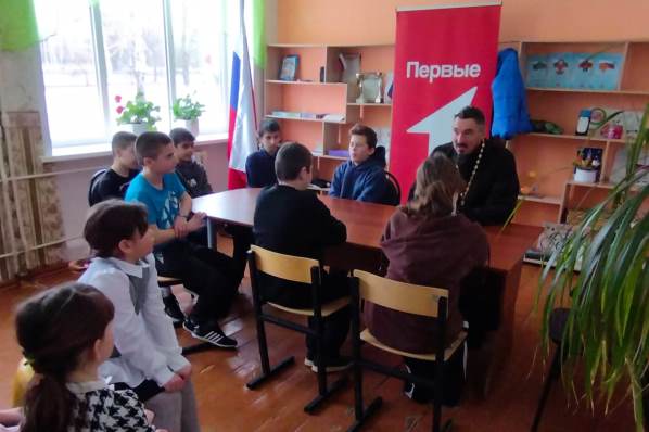 Священник провел познавательную беседу с учащимися 2–7 классов, в которой коснулся темы героизма в светской истории и православии.