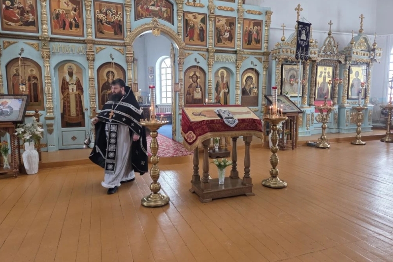 В пятницу 10 апреля, в самый скорбный день церковного календаря, в Казанском храме поселка Каменка благочинный Каменского церковного округа иерей Сергий Папин совершил Царские часы, изобразительные и вечерню с выносом Плащаницы.