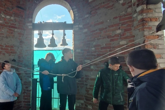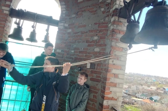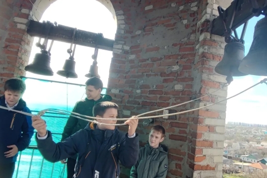 Затем ребята поднялись на колокольню Казанского храма. По доброй пасхальной традиции каждый из них смог позвонить в колокола, ощутив живую связь с духовными традициями нашего народа. Этот момент вызвал у детей особый восторг и запомнился всем участникам.