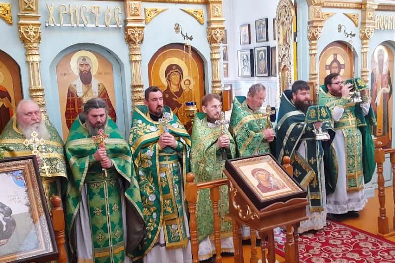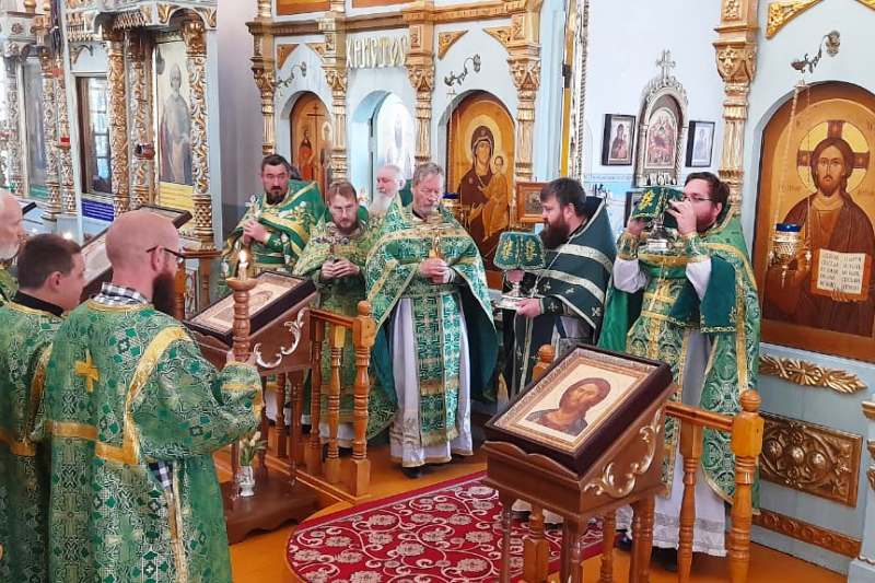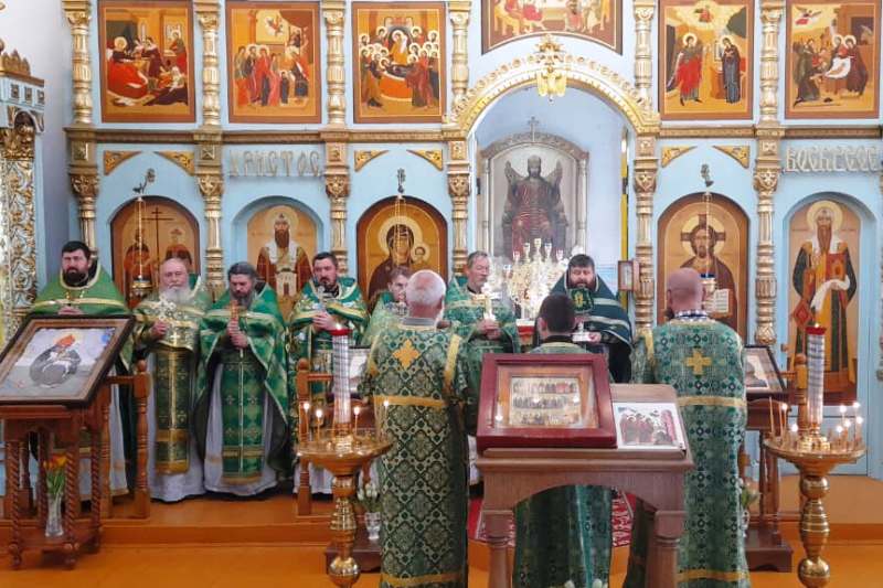 12 сентября, в пятницу седмицы 14-й по Пятидесятнице, день памяти перенесения мощей святого благоверного князя Александра Невского, в храме в честь иконы Божией Матери «Казанская» поселка Каменка соборно совершена Божественная литургия святителя Иоанна Златоуста.