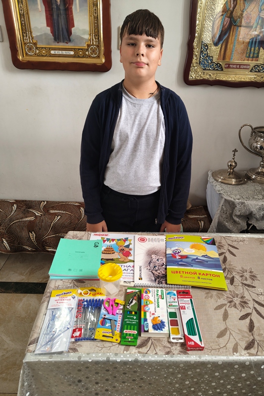 Настоятель храма иерей Вячеслав Адамов вручил подарки восьмерым детям из нуждающихся семей. Дети получили наборы канцелярских принадлежностей, которые были подготовлены приходом. В наборы вошли все необходимые для учебы предметы: тетради, ручки, карандаши, пеналы, краски, кисточки и прочие принадлежности.
