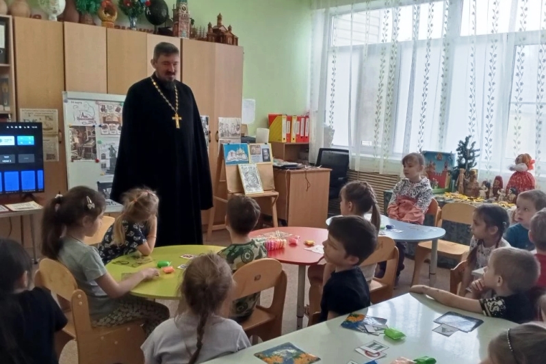 20 марта в детском саду «Колокольчик» поселка Каменка прошел час православия под названием «К истокам православной мудрости», приуроченный ко Дню православной книги. В мероприятии принял участие настоятель Успенского храма села Трехстенки иерей Артемий Фисенко.