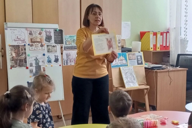 Иерей Артемий рассказал детям о создании первых рукописных книг на Руси, познакомил их с историей возникновения первой типографии и духовной литературы, а также ответил на интересующие ребят вопросы.
