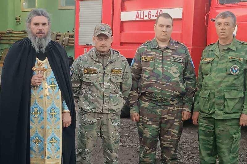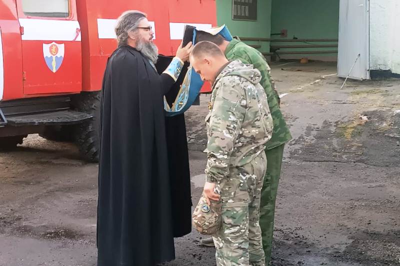 По окончании молебна иеромонах Ермоген окропил святой водой личный состав пожарной части и пожарную технику. В завершение богослужения он обратился к пожарным с традиционным для этой профессии напутствием – пожеланием «сухих рукавов», что в профессиональной среде означает отсутствие вызовов и спокойное дежурство.