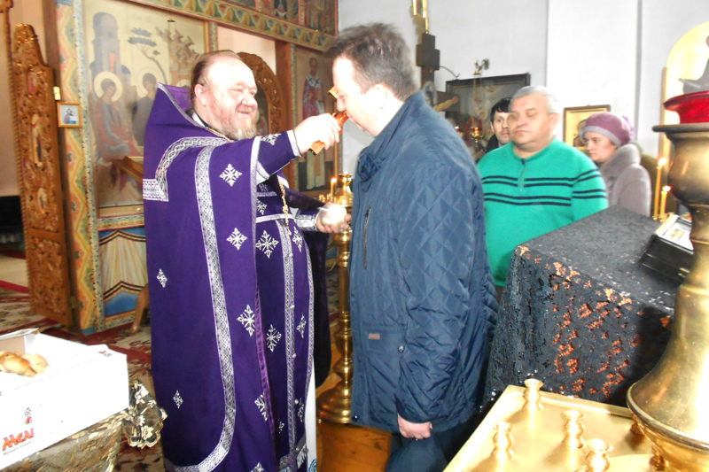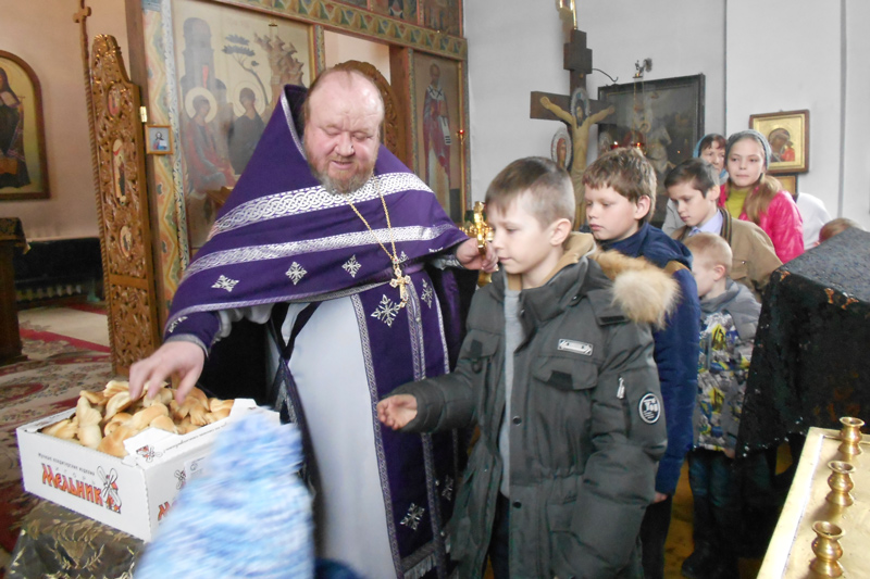 По запричастном стихе отец Сергий обратился к прихожанам со словами назидания, поздравил причастников с принятием Тела и Крови Христовой, всем присутствующим вручил «жаворонков», которые испекли воспитанники Воскресной школы Троицкого храма и школ райцентра на мастер-классах.