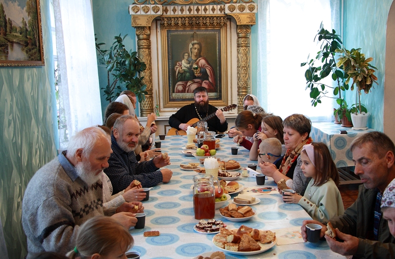 По завершении праздничного мероприятия участники собрались за общим столом для традиционного чаепития. Это стало тёплой и душевной кульминацией, объединив детей, отцов, дедушек и педагогов в дружеской обстановке. Атмосфера была наполнена семейным теплом и уютом. Отец Сергий порадовал всех исполнением духовных песнопений с глубоким смыслом и благоговением.