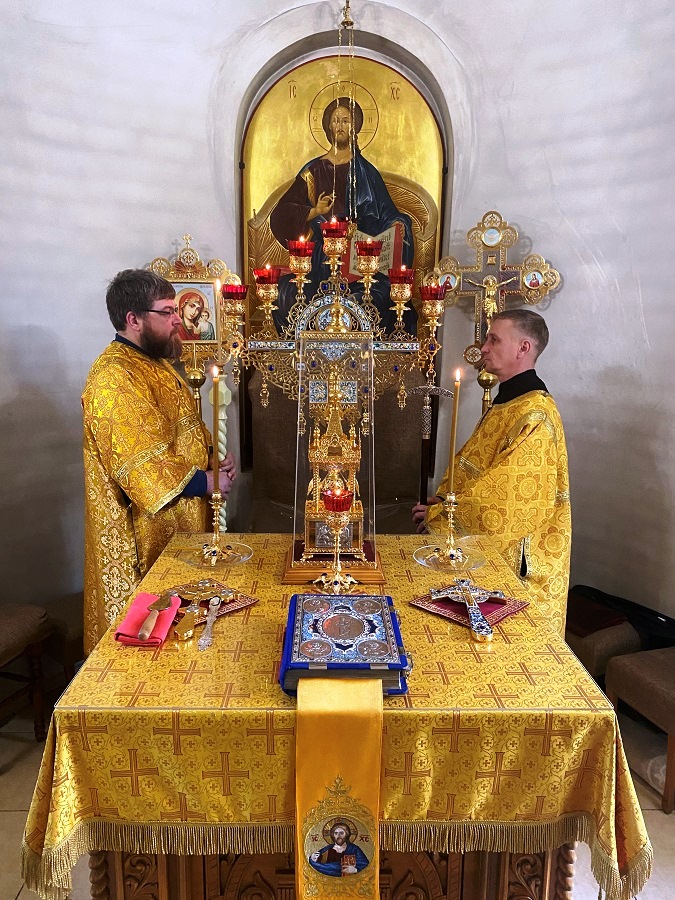 Игумен Илия совершил Божественную литургию святителя Иоанна Златоуста в храме в честь иконы Божией Матери «Взыскание погибших», за которой все учащиеся исповедались и причастились Святых Христовых Тайн.
