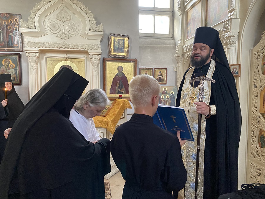 В завершении пострига игумен Илия обратился со словом напутствия к новопостриженной о значении великого ангельского образа в достижении спасения души и призвал следовать жизни и трудам, по мере возможности, своему небесному покровителю – преподобному Серафиму Саровскому, чудотворцу, и молиться за весь христианский мир.
