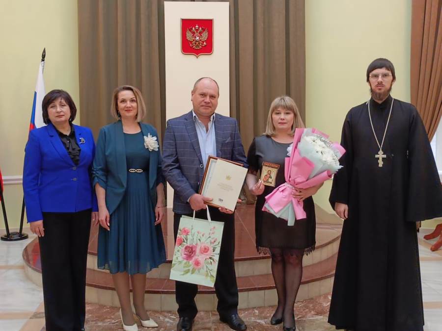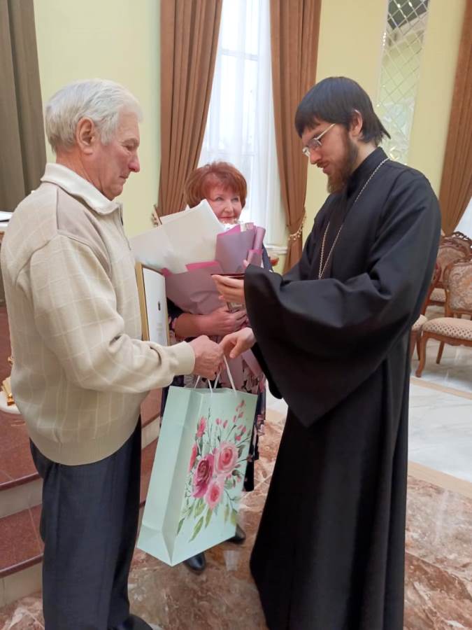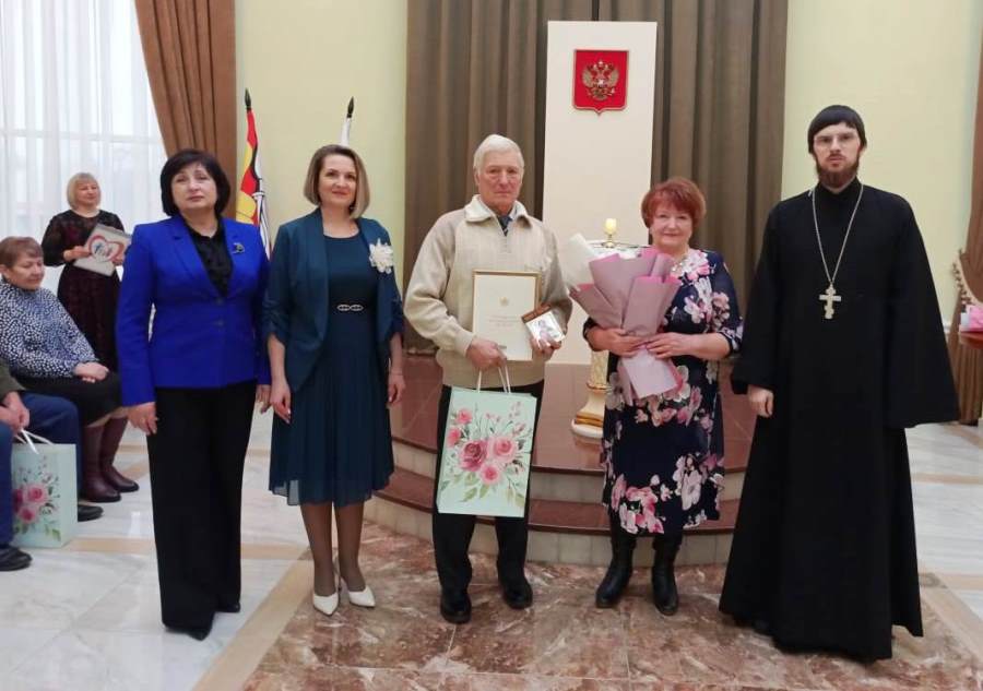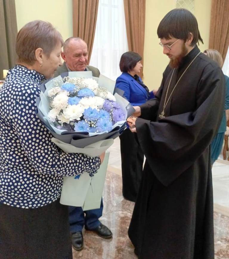 Работники ЗАГС пригласили 4 пары, отмечающие в этом году юбилейную дату семейной жизни. У каждого своя история знакомства и секреты долгой совместной жизни. Пары поставили свои подписи в книге семейных торжеств отдела и принимали поздравления: благодарственные письма, подарки и цветы. От Острогожского благочиния пары поздравил клирик Тихоновского соборного храма иерей Олег Потапов. Он пожелал юбилярам здоровья, помощи Господа нашего и вручил на память иконы.