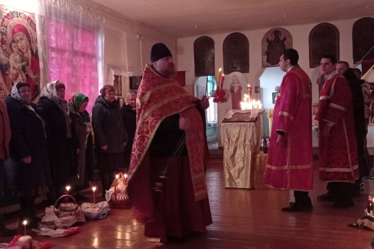 Священник огласил прихожанам Пасхальное послание Святейшего Патриарха Московского и всея Руси Кирилла и Преосвященнейшего Дионисия, епископа Россошанского и Острогожского. По окончании богослужения настоятель поздравил верующих с мироспасительным праздником Пасхи Христовой и освятил пасхальную снедь.