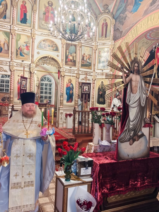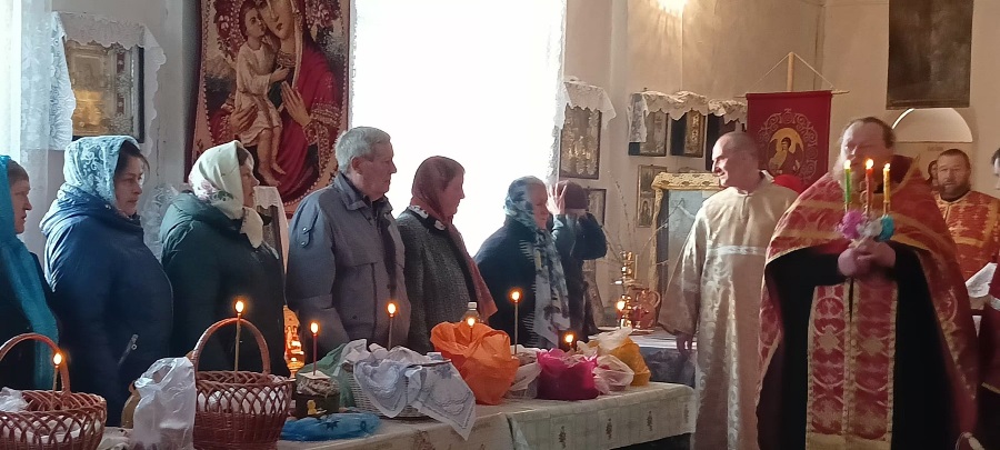 Священник огласил прихожанам Пасхальное послание Святейшего Патриарха Московского и всея Руси Кирилла и Преосвященнейшего Дионисия, епископа Россошанского и Острогожского. По окончании богослужения настоятель поздравил верующих с мироспасительным праздником Пасхи Христовой и освятил пасхальную снедь.
