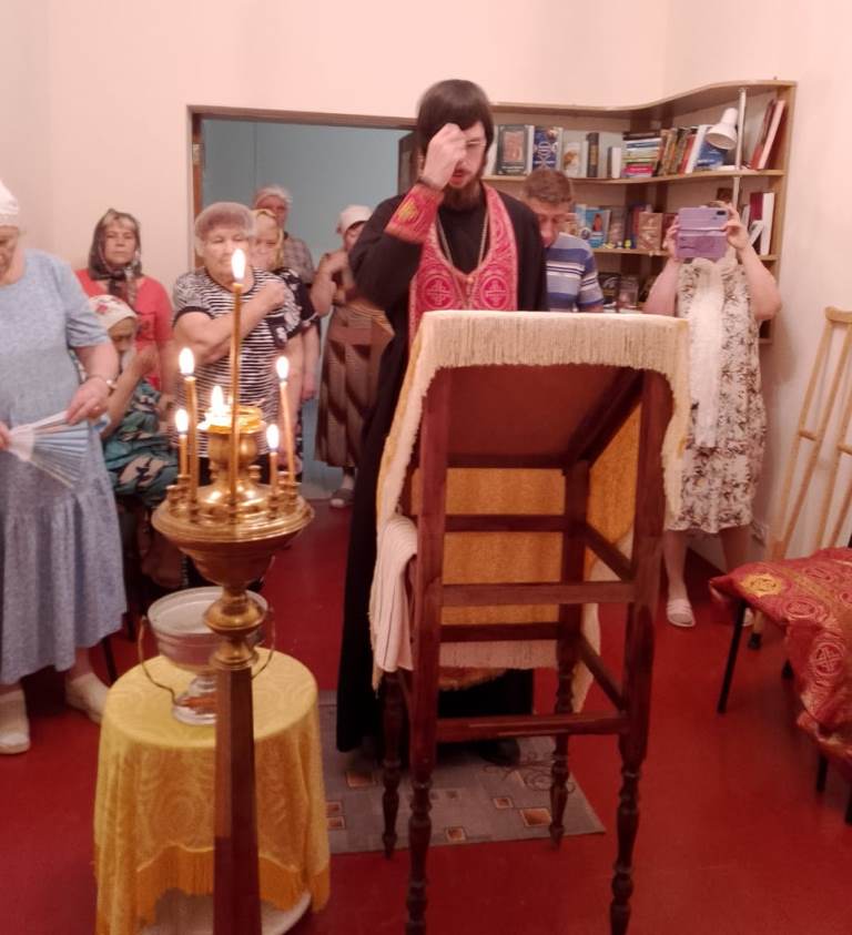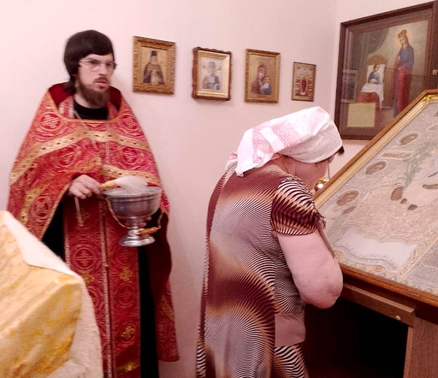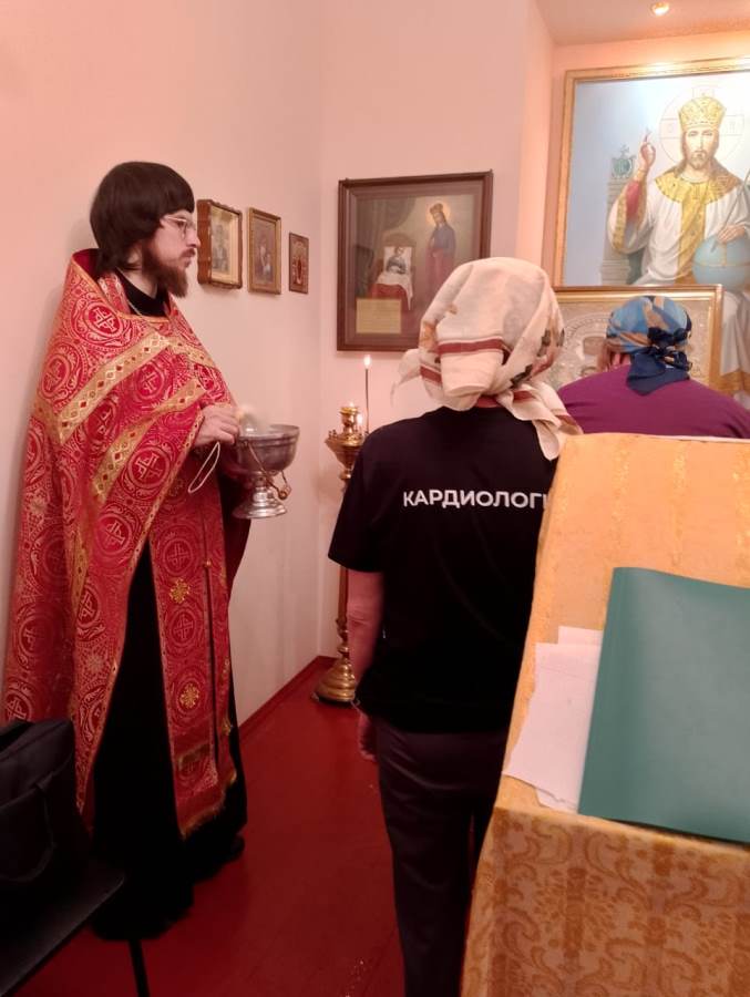По этому случаю в молитвенной комнате совместно с персоналом и пациентами помощником благочинного по медицинскому служению иереем Олегом Потаповым был отслужен водосвятный молебен.
