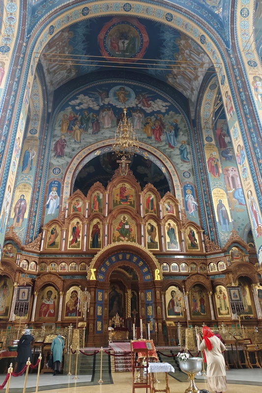 Клирик собора диакон Алексий Неделин провел для гостей познавательную обзорную экскурсию, рассказал историю строительства, а также о святынях, которые находятся в храме.