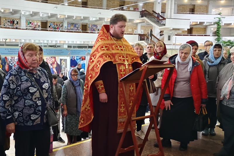 Паломническая группа посетила Дворец творчества детей и молодежи, где проходит духовно-просветительский форум «Благодатный огонь в сердце каждого». Молебен у ковчега с частицей Ризы Господа нашего Иисуса Христа совершил священник Геннадий Пашкевич. Все участники поездки молились у святыни, после чего отправились в Благовещенский кафедральный собор.