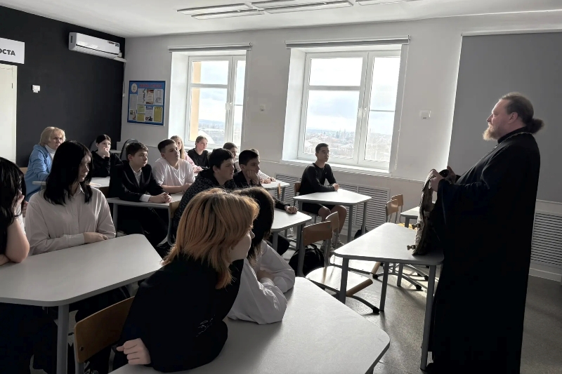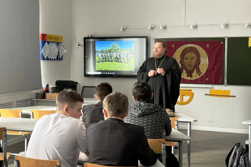 5 марта настоятель храма Архистратига Божия Михаила города Острогожска протоиерей Владимир Шереметов провел урок мужества в местной МКОУ СОШ №8.