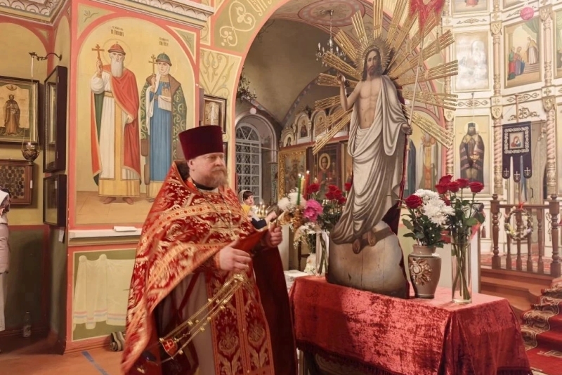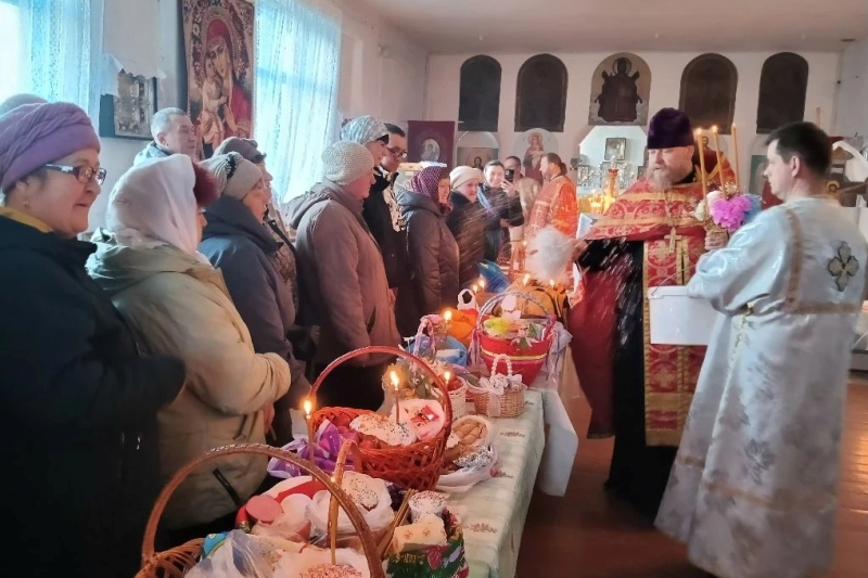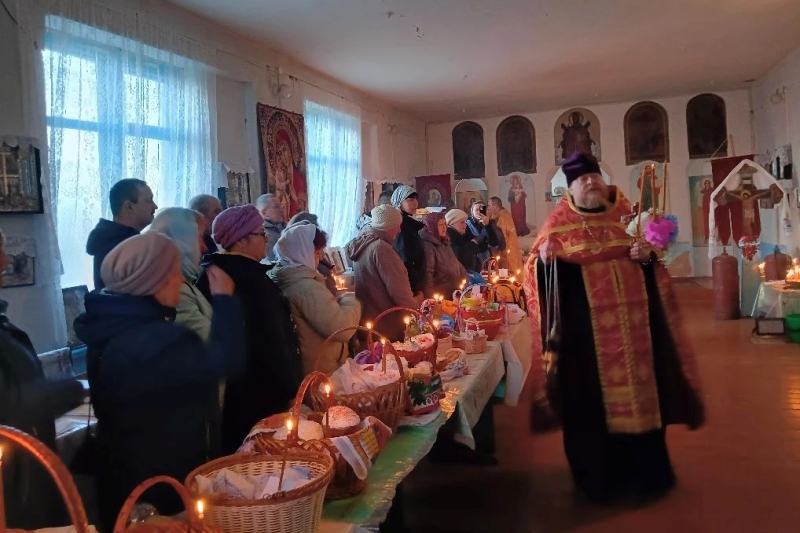 В ночь на 12 апреля в Казанском храме поселка Каменка Божественную литургию в праздник Светлого Христова Воскресения совершил благочинный Каменского церковного округ...