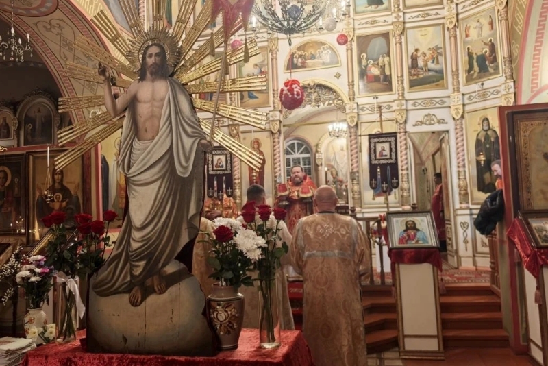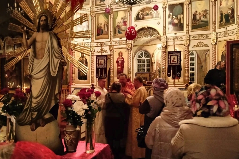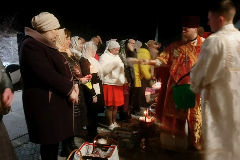 Священник огласил прихожанам Пасхальное послание Святейшего Патриарха Московского и всея Руси Кирилла и Преосвященнейшего Дионисия, епископа Россошанского и Острогожского. По окончании богослужения настоятель поздравил верующих с мироспасительным праздником Пасхи Христовой и освятил пасхальную снедь.