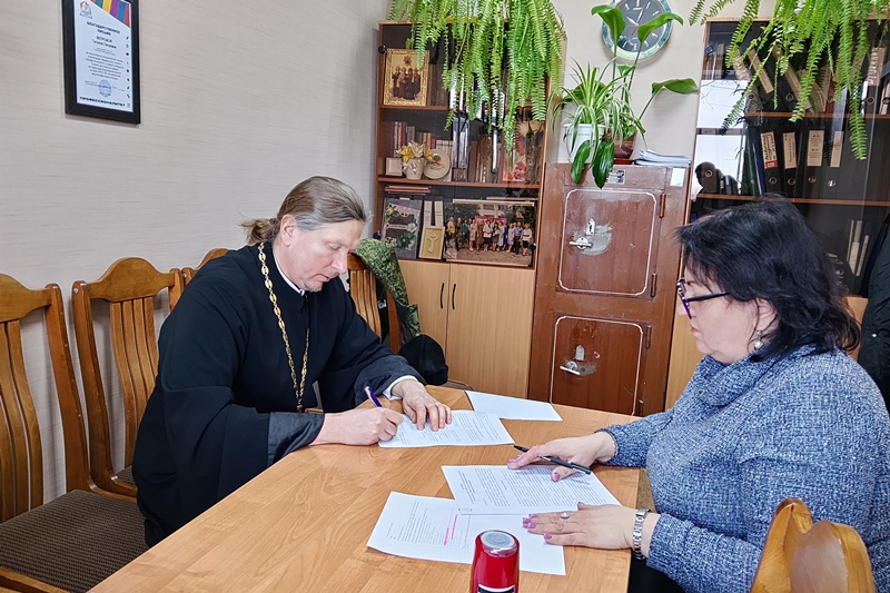 В ответном слове священнослужитель добавил: «Мы сегодня закрепили договором те отношения, которые иначе как соработничество, содружество, взаимодействие нельзя назвать. Это соглашение, которое открывает перед нами некую перспективу. Перспективу познания основ нашей православной культуры, перспективу понимания того, что это есть не просто некая совокупность знаний, а есть еще образование души – самое высшее образование».