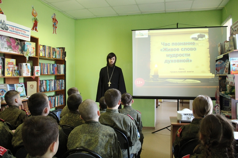 10 марта в Острогожской детской библиотеке прошло мероприятие, посвященное Дню православной книги. На встречу были приглашены учащиеся и преподаватели Горожанского казачьего кадетского корпуса города Острогожска, а также клирик Тихоновского соборного храма города Острогожска иерей Олег Потапов.