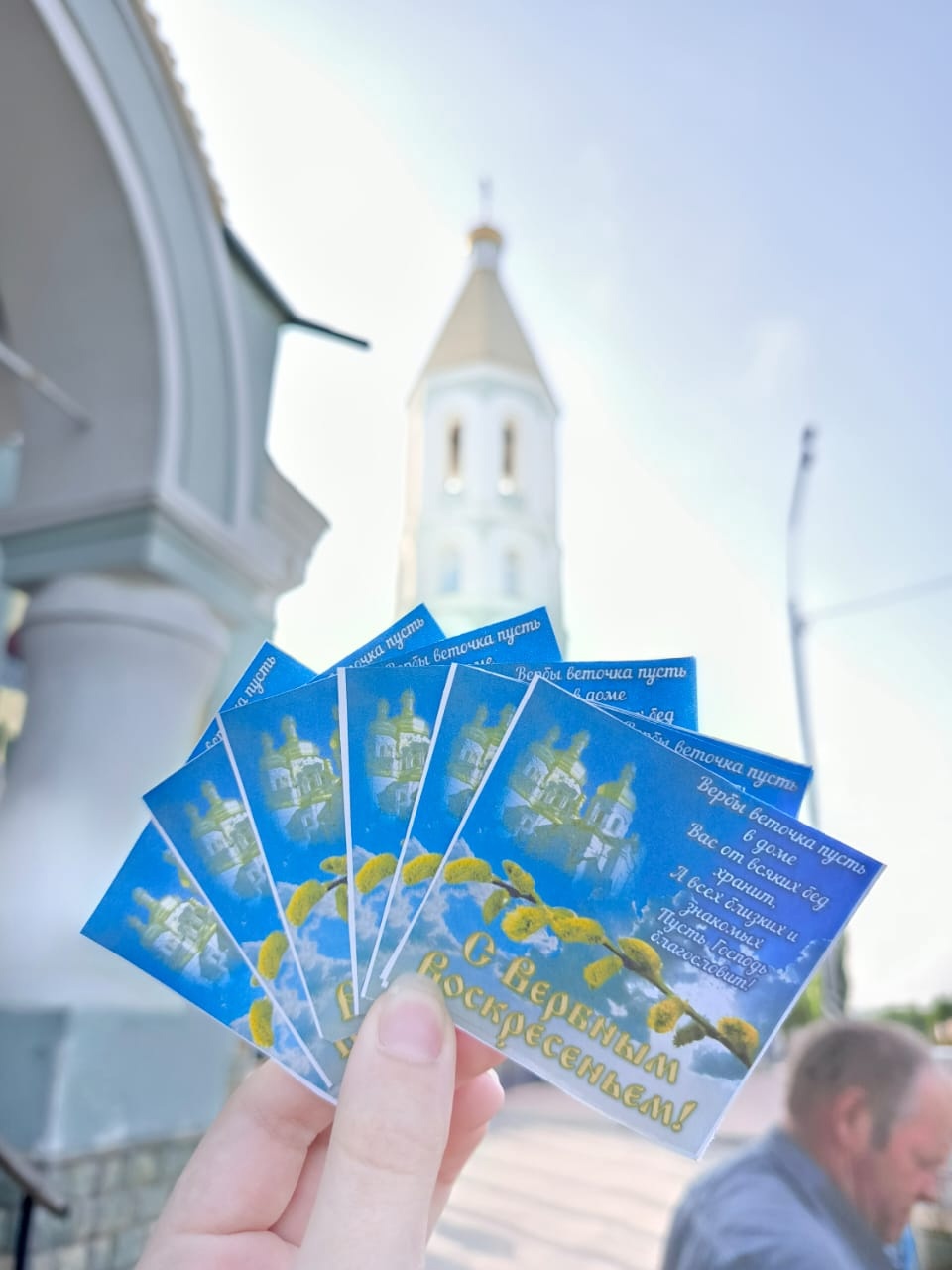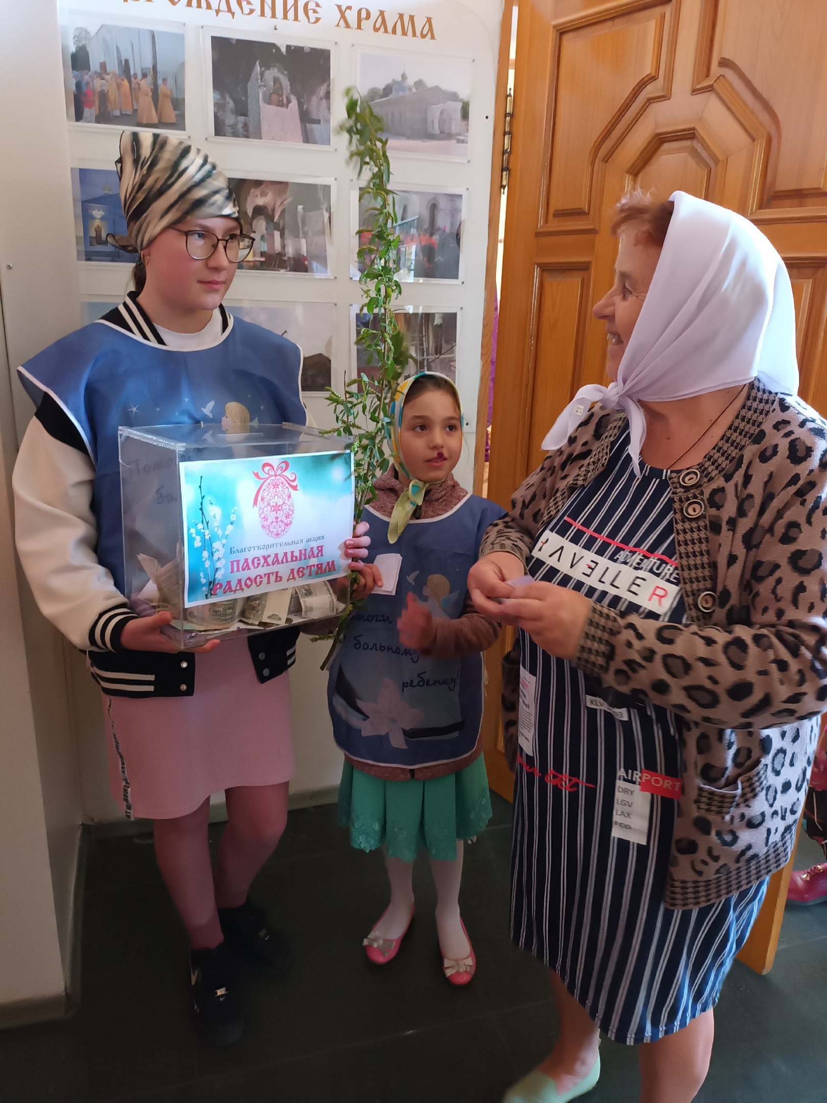 Юные волонтёры раздавали праздничные открыточки прихожанам за посильные пожертвования.