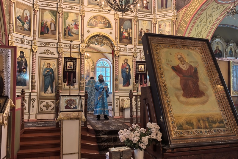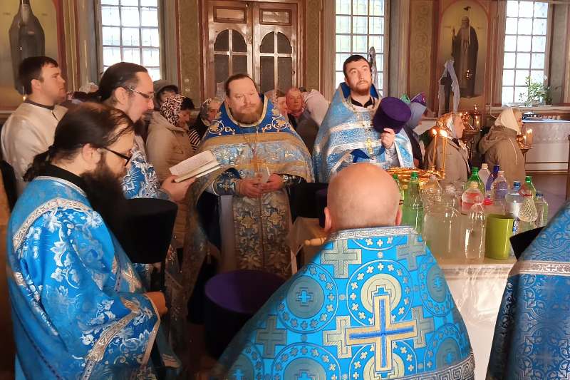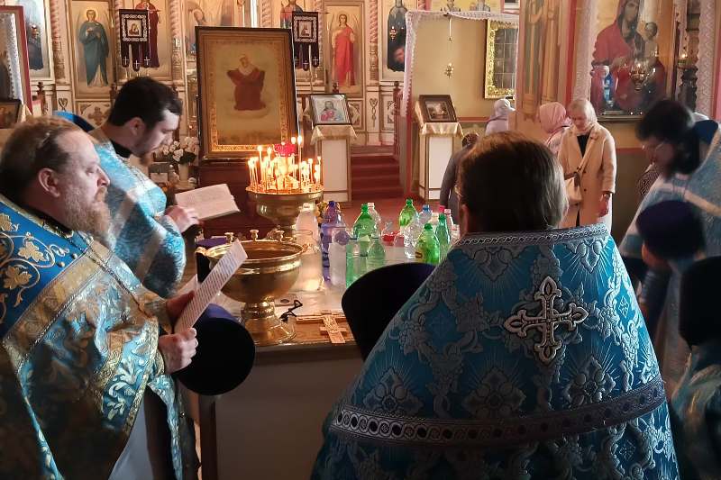 Праздничное богослужение завершилось соборным молебным пением с чином малого освящения воды и чтением молитвы ко Пресвятой Богородице.