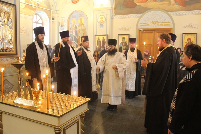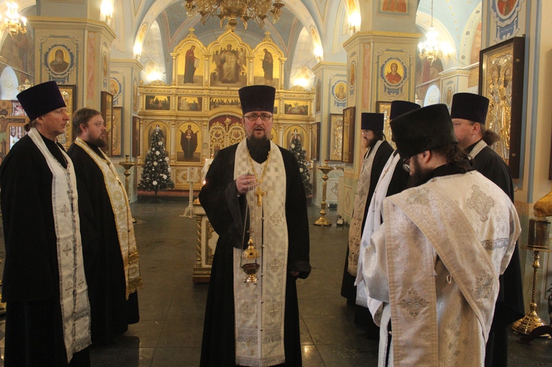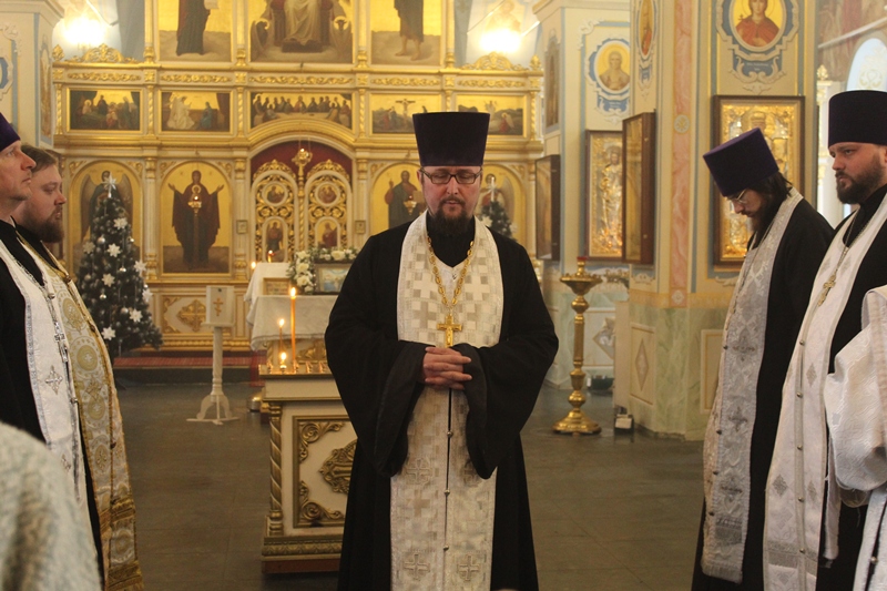 Богослужение возглавил благочинный Острогожского церковного округа, настоятель Тихоновского соборного храма иерей Алексий Курганский в сослужении настоятеля храма Архистратига Божия Михаила г. Острогожска протоиерея Владимира Шереметова, настоятеля храма Сретения Господня г. Острогожска протоиерея Валерия Желнина, настоятеля храма святого Великомученика и Победоносца Георгия с. Терновое иерея Артемия Дашенко, настоятеля храма иконы Божией Матери «Казанская» с. Покровка иерея Андрея Рыбак, клириков Тихоновского соборного храма иерея Олега Потапова и иеродиакона Захарии (Касьянова).