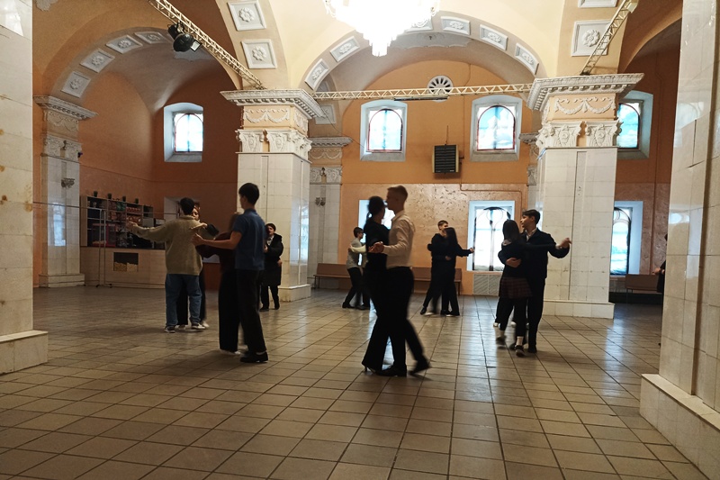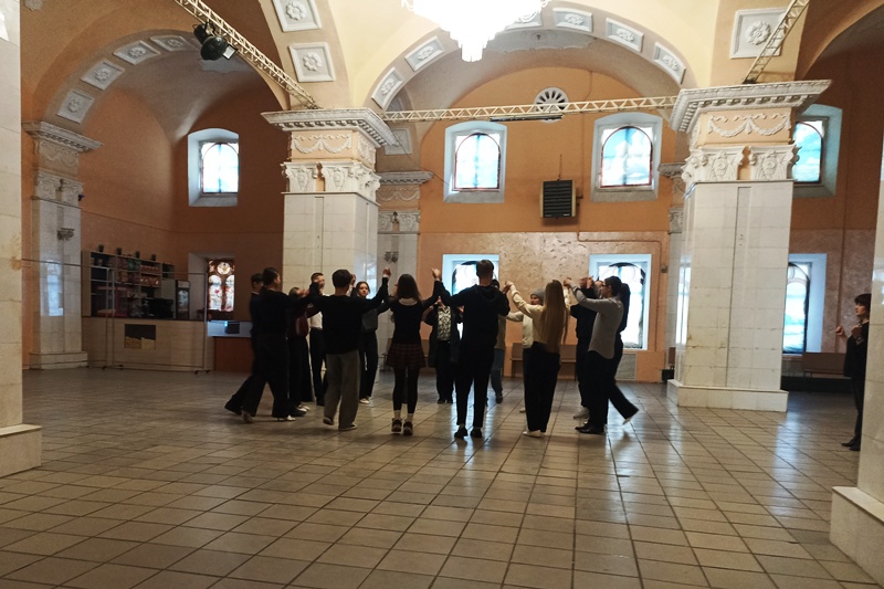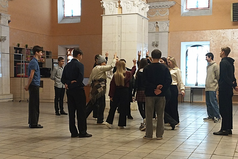 В рамках мероприятия участники под руководством хореографа Марины Владимировны Логвиновой отработали танцевальные элементы двух классических танцев – полонеза и вальса.