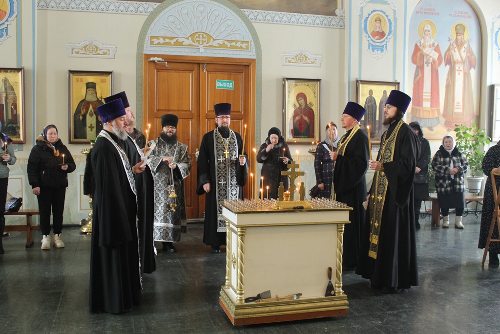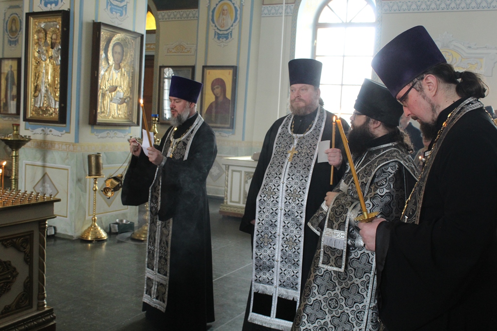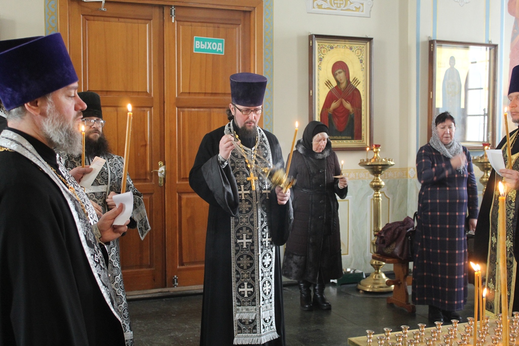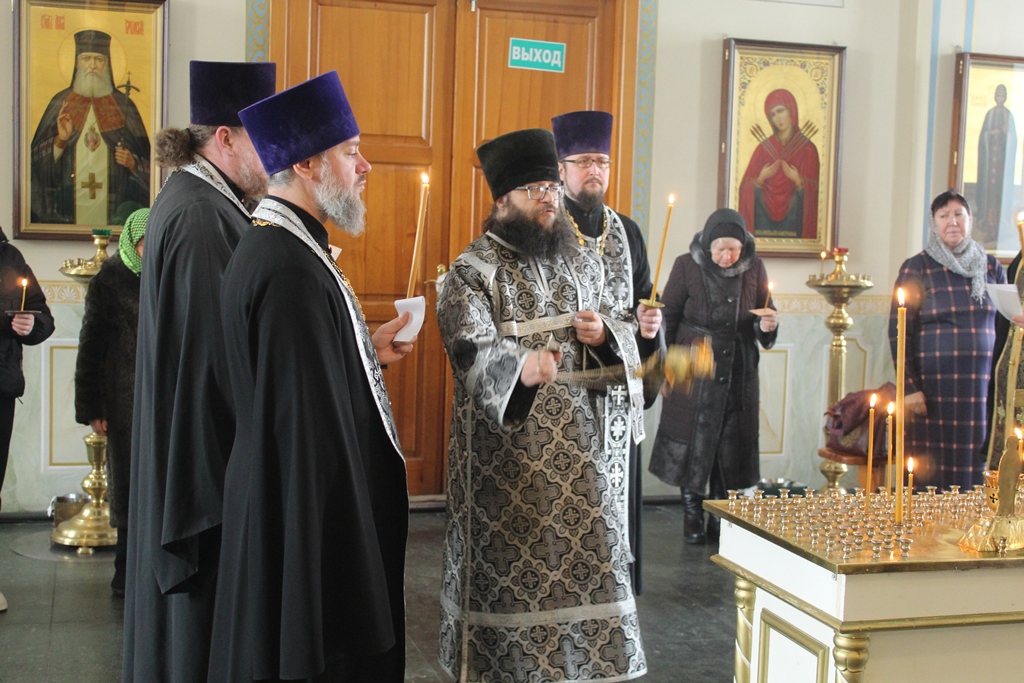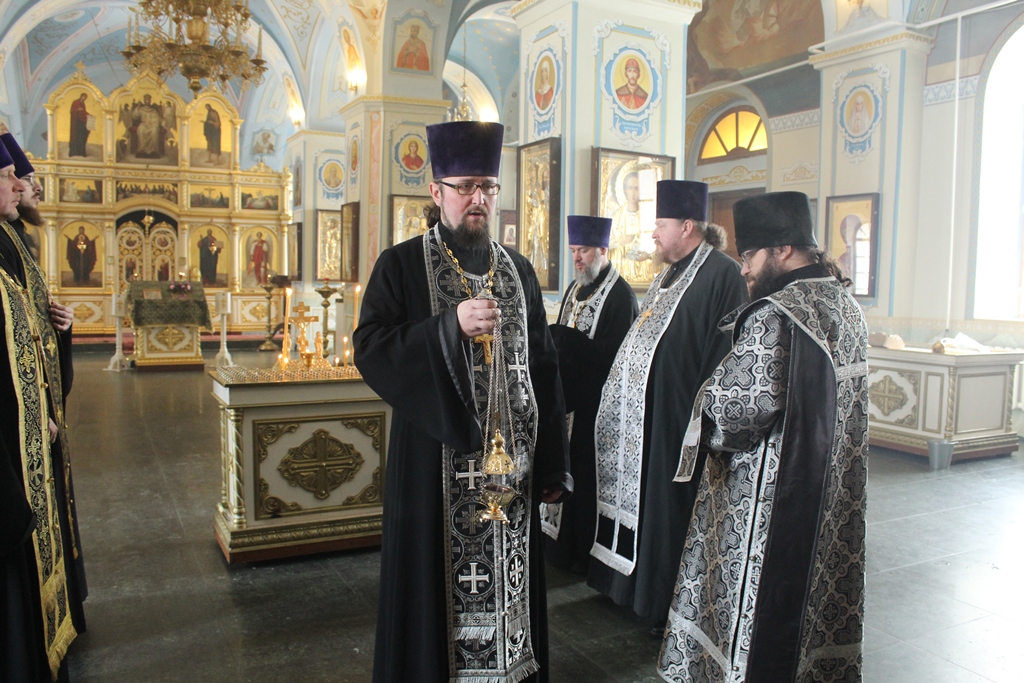 Богослужение возглавил благочинный Острогожского церковного округа, настоятель храма иерей Алексий Курганский в сослужении настоятеля храма Архистратига Божия Михаила города Острогожска протоиерея Владимира Шереметова, настоятеля храма Сретения Господня города Острогожска протоиерея Валерия Желнина, настоятеля храма Преображения Господня города Острогожска иерея Константина Луцкевича, а также клириков Тихоновского соборного храма иерея Олега Потапова и иеродиакона Захария (Касьянова).